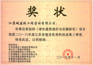 二O一六年度江蘇省建設優秀科技成果三等獎